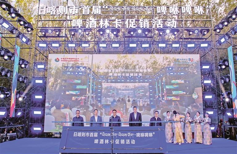 圖為日喀則市首屆“啤咻啤咻”啤酒林卡促銷活動啟動儀式。