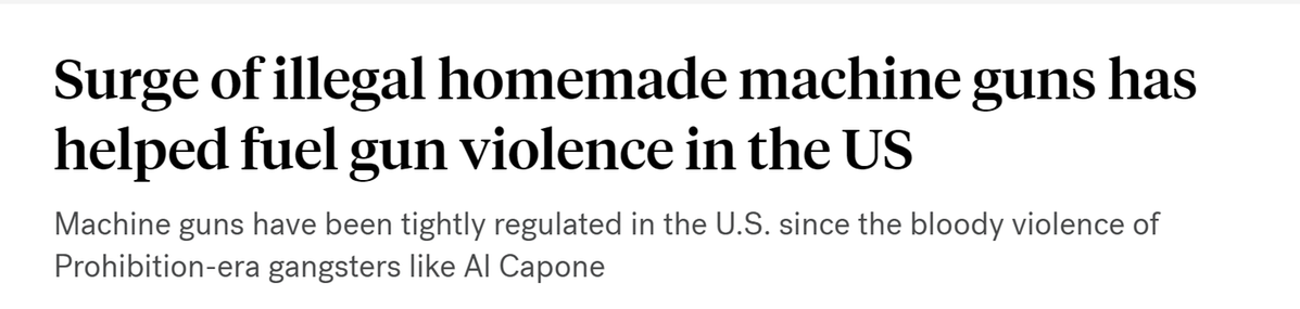 據(jù)報(bào)道,由于3D打印制作或在線購買的小型金屬或塑料零件的驚人增長(zhǎng),全美各地近年來都出現(xiàn)了使用經(jīng)改裝的全自動(dòng)槍支制造的槍擊事件。盡管針對(duì)機(jī)槍的禁令可以追溯到上世紀(jì)二三十年代的禁酒令時(shí)期,但有關(guān)部門表示,格洛克開關(guān)、連發(fā)阻鐵等改裝零件的大量增加,使得普通人能夠?qū)⒑戏ǖ陌胱詣?dòng)槍支改裝得更加危險(xiǎn),進(jìn)而助長(zhǎng)了槍支暴力。