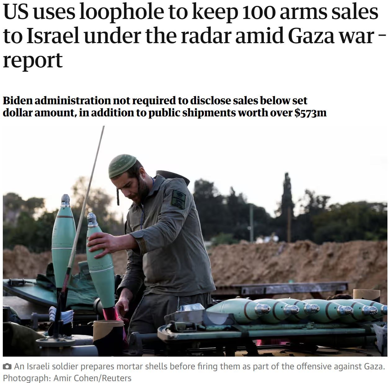 而據(jù)美國現(xiàn)任和前任官員此前披露,本輪巴以沖突爆發(fā)后,拜登政府已秘密通過100多筆單獨(dú)軍售計劃,向以色列輸送了大量武器。