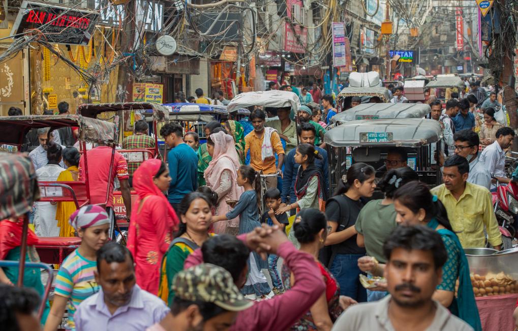 2023年4月26日,人們聚集在印度新德里的一處市場(chǎng)。新華社發(fā)(賈韋德·達(dá)爾攝)