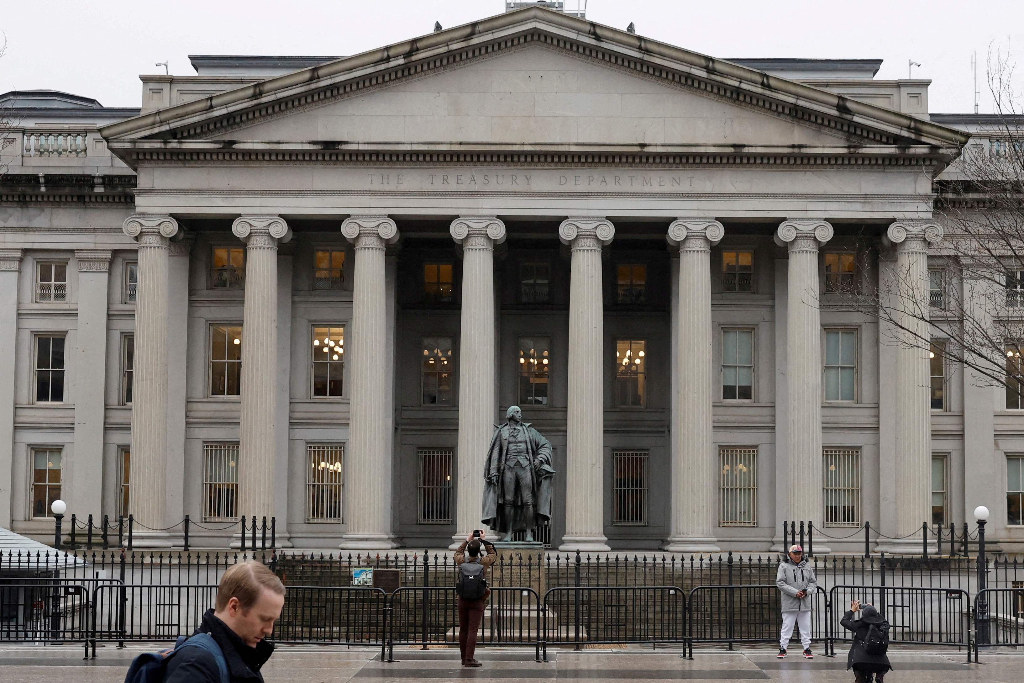 位于美國(guó)首都華盛頓的財(cái)政部大樓(路透社)