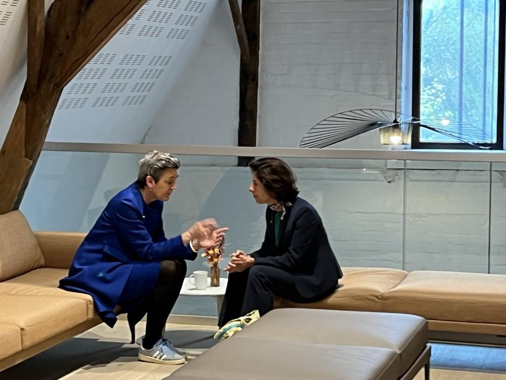△歐盟競(jìng)爭(zhēng)事務(wù)專員維斯塔格與美國(guó)商務(wù)部長(zhǎng)雷蒙多交流(圖片源自維斯塔格個(gè)人社交媒體賬號(hào))