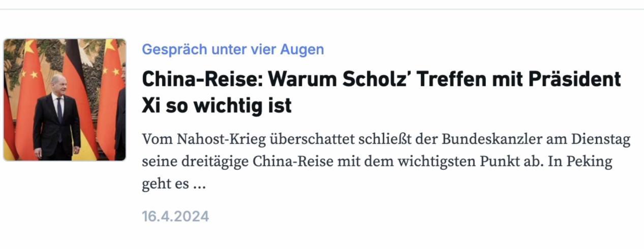 △德國(guó)網(wǎng)絡(luò)編輯部(RND)網(wǎng)站發(fā)布朔爾茨訪華的評(píng)論文章