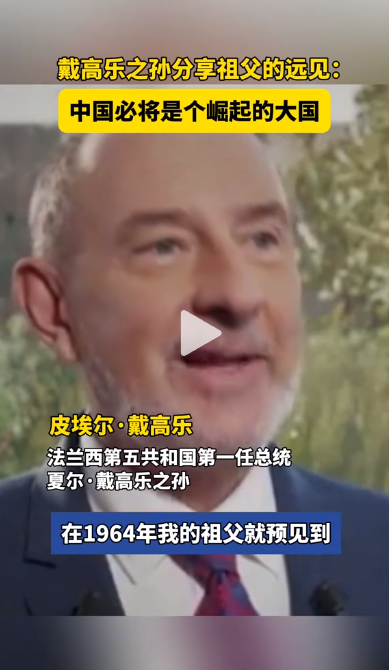 戴高樂(lè)之孫分享祖父對(duì)中國(guó)發(fā)展的遠(yuǎn)見(jiàn):必將崛起的大國(guó)