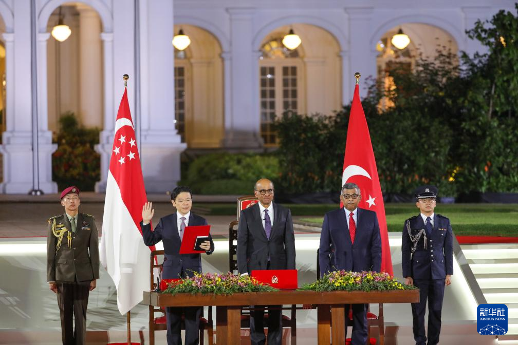5月15日,黃循財(左二)出席在新加坡總統(tǒng)府舉行的宣誓就職儀式。新華社發(fā)(新加坡通信通訊及新聞部供圖)