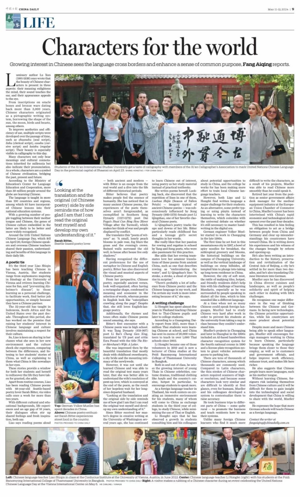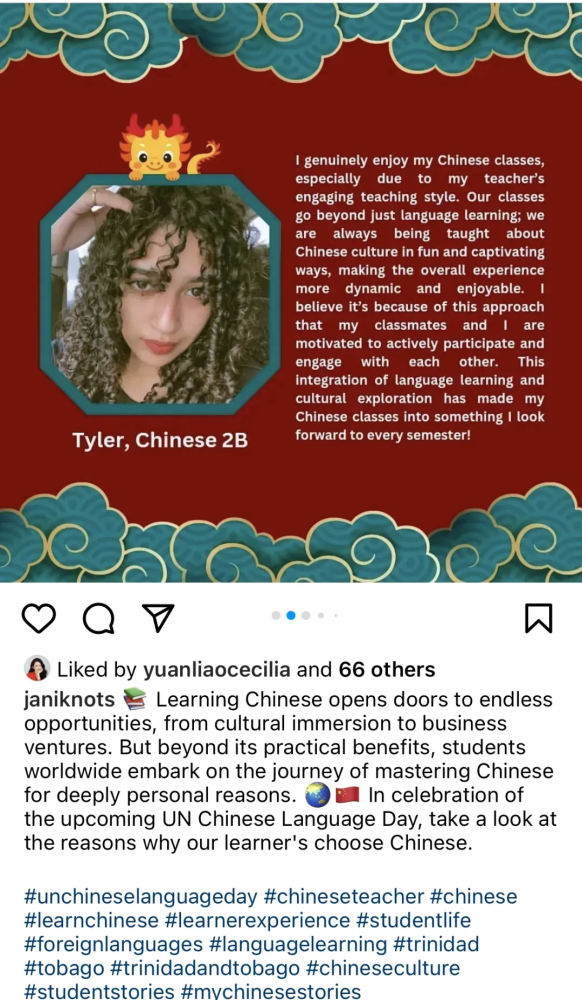 第十五個聯(lián)合國中文日和第五個“國際中文日”舉辦期間,中外語言交流合作中心與中國日報網(wǎng)聯(lián)合發(fā)起 “國際中文日”系列線上活動,鼓勵大家講述、分享與中文相遇的精彩故事,半個月內(nèi)活動參與者覆蓋全球五大洲近70個國家和地區(qū),包括英國、意大利、澳大利亞、美國、巴西、日本、韓國、泰國、老撾、迪拜、喀麥隆等,作品超2000件,閱讀量超1000萬,在中國和其他國家主流社交媒體平臺掀起“中文日”熱潮,吸引了海內(nèi)外網(wǎng)友的廣泛關(guān)注。
