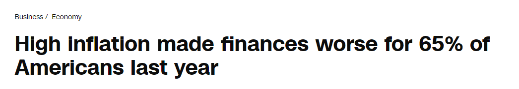 美聯(lián)儲近日發(fā)布的《2023年美國家庭經濟狀況報告》(Economic Well-Being of US Households)顯示,65%的美國家庭的財務狀況因通脹而惡化,其中19%的人認為財務狀況“嚴重惡化”。