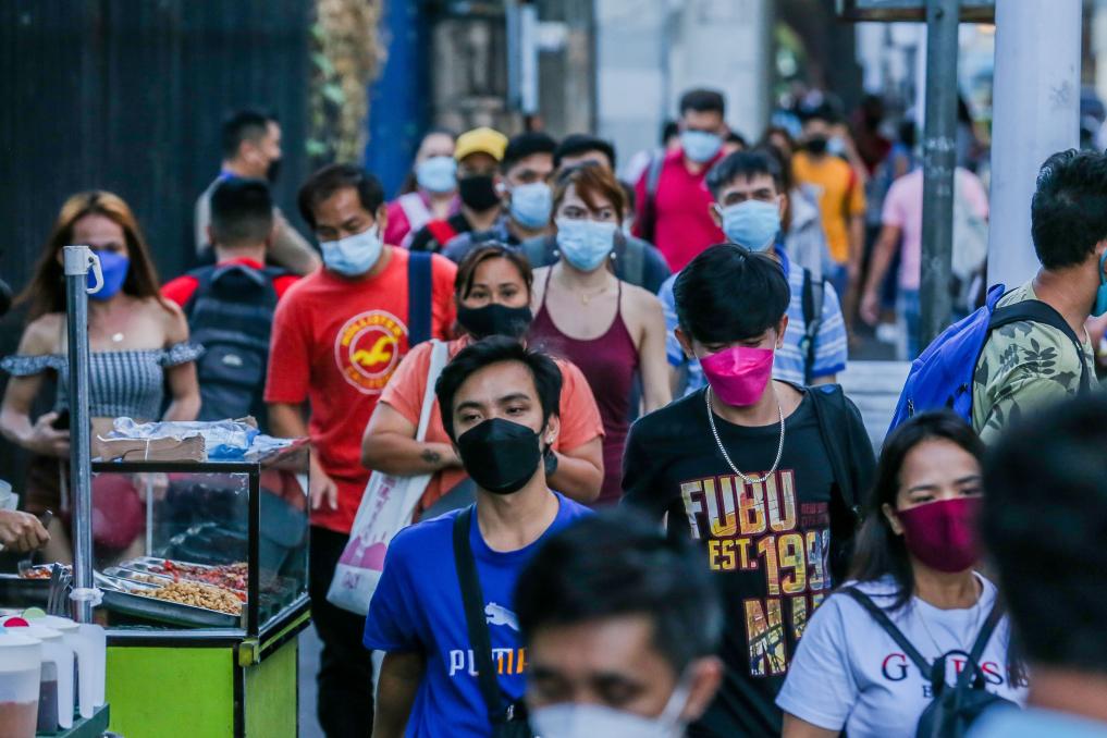 2022年1月17日,在菲律賓奎松城,人們走向公交車(chē)站。新華社發(fā)(烏馬利攝)