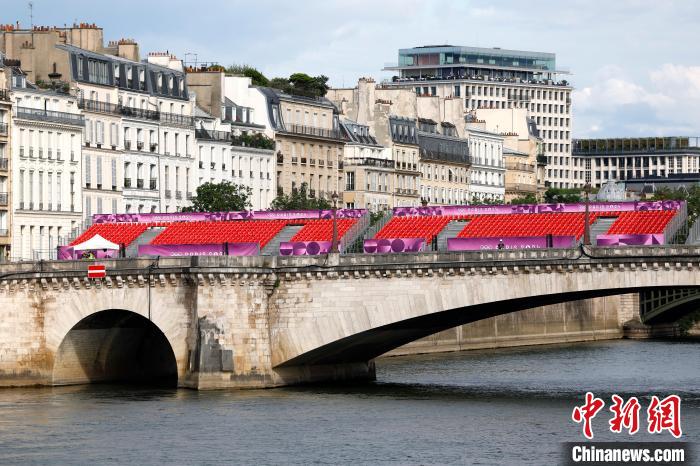 當(dāng)?shù)貢r(shí)間7月21日,巴黎奧運(yùn)會(huì)開幕在即,圖為塞納河上的觀眾席?!≈行律缬浾?富田 攝