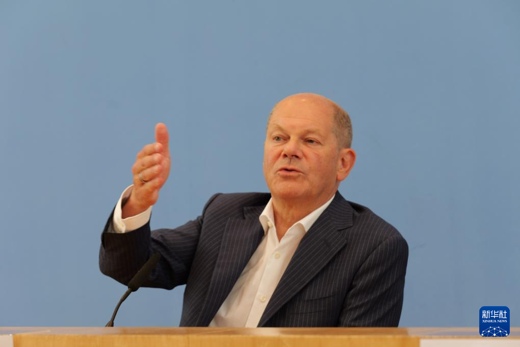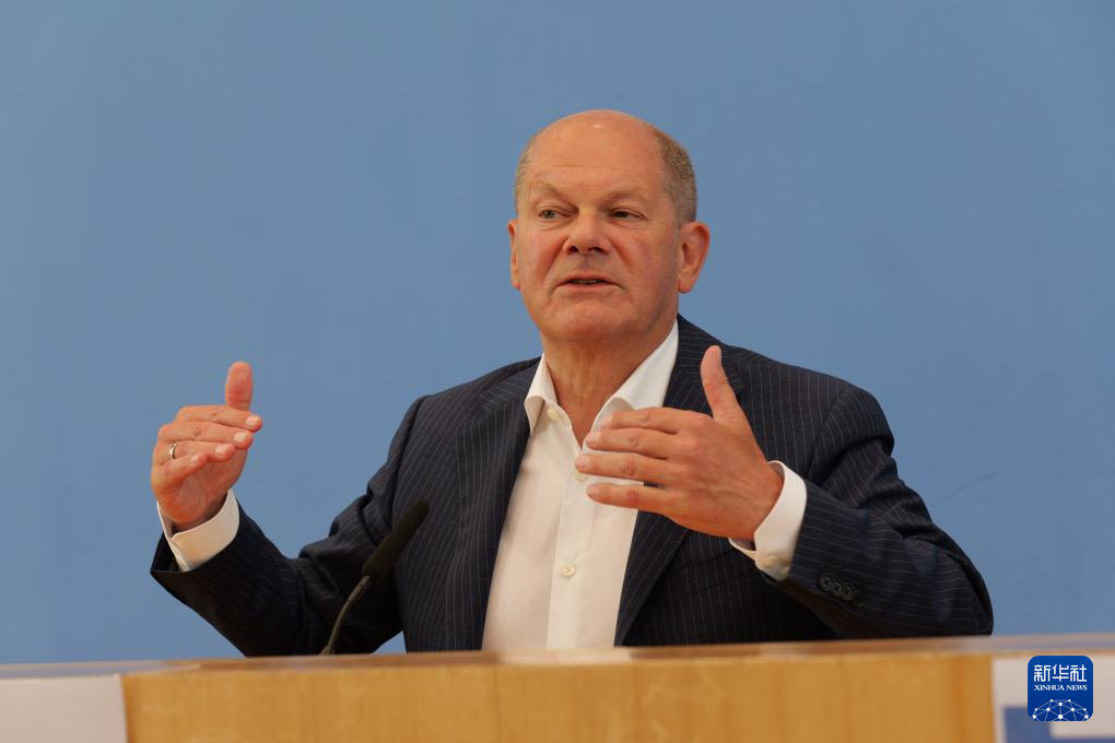 7月24日,德國總理朔爾茨在柏林舉行的新聞發(fā)布會(huì)上講話。新華社記者 李函林 攝