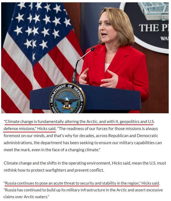 美國(guó)國(guó)防部發(fā)布的最新報(bào)告將北極描述為對(duì)美國(guó)"具有重要戰(zhàn)略意義的地區(qū)",戰(zhàn)略意義在于"通往美國(guó)國(guó)土的北部通道"和"重要的美國(guó)國(guó)防基礎(chǔ)設(shè)施"等。