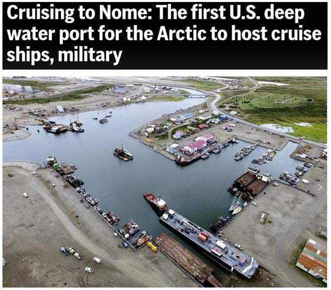 此外,美國(guó)去年提出要耗資6億多美元將阿拉斯加州諾姆港擴(kuò)建為美國(guó)首個(gè)北極深水港,而擴(kuò)建的目的之一就是方便美國(guó)軍艦??俊?/p>