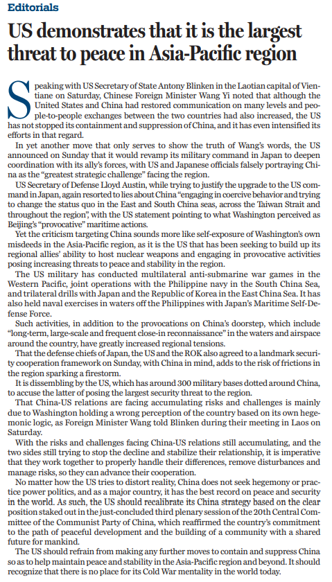 原文標(biāo)題:US demonstrates that it is the largest threat to peace in Asia-Pacific region