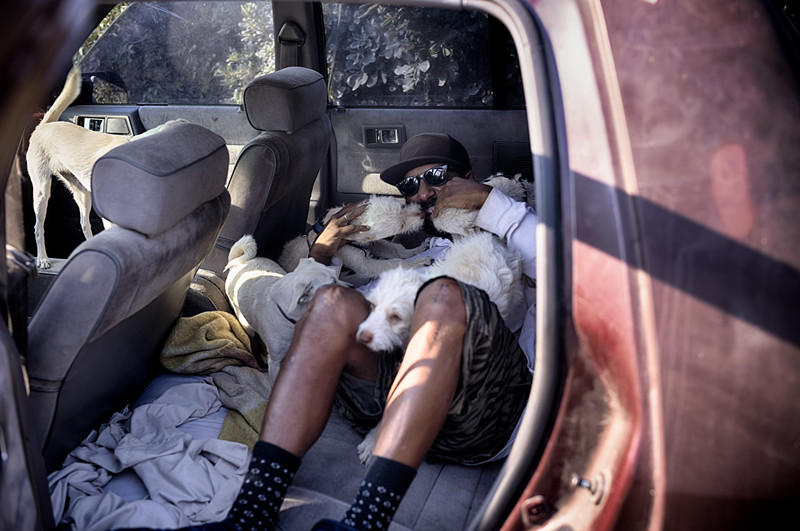 洛杉磯的一名無家可歸者和他的6只狗住在車里(資料圖)