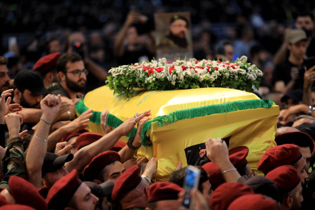 8月1日,在黎巴嫩首都貝魯特,真主黨成員參加真主黨高級(jí)軍事指揮官福阿德·舒庫(kù)爾的葬禮。新華社發(fā)(比拉爾·賈維希攝)