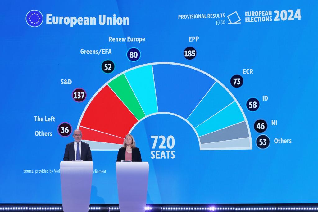 在6月的歐洲議會選舉中,盡管中間偏右的歐洲人民黨黨團和中間偏左的社民黨黨團分別保持歐洲議會第一、第二大黨團地位,但右翼和極右翼勢力席位有所增加,法國、德國等歐盟國家的極右翼政黨得票率均領先執(zhí)政黨,歐洲政治光譜明顯“右移”。