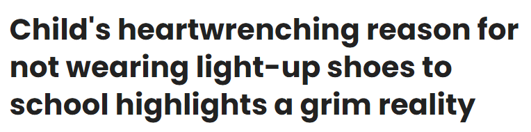 文章提到,一位名叫林賽·范·艾倫(Lindsay Van Allen)的母親在一篇帖子中講述了給上五年級(jí)的女兒梅茜(Maisy)買新校鞋時(shí)發(fā)生的事情?!霸谖医o梅茜買上學(xué)穿的鞋時(shí),她跟我說不想要能發(fā)光的鞋子。”她說,當(dāng)女兒特別強(qiáng)調(diào)一定不要買那雙可愛又新奇的LED發(fā)光鞋的時(shí)候,她以為這是因?yàn)楹⒆娱L(zhǎng)大了,要上五年級(jí)了,不想讓自己看起來很幼稚。