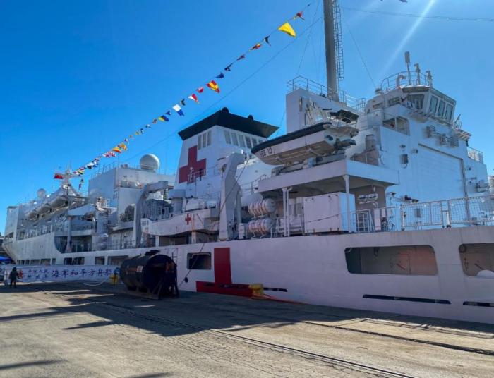 中國“和平方舟”號醫(yī)院船。圖片來源:南非國防軍社交媒體截圖