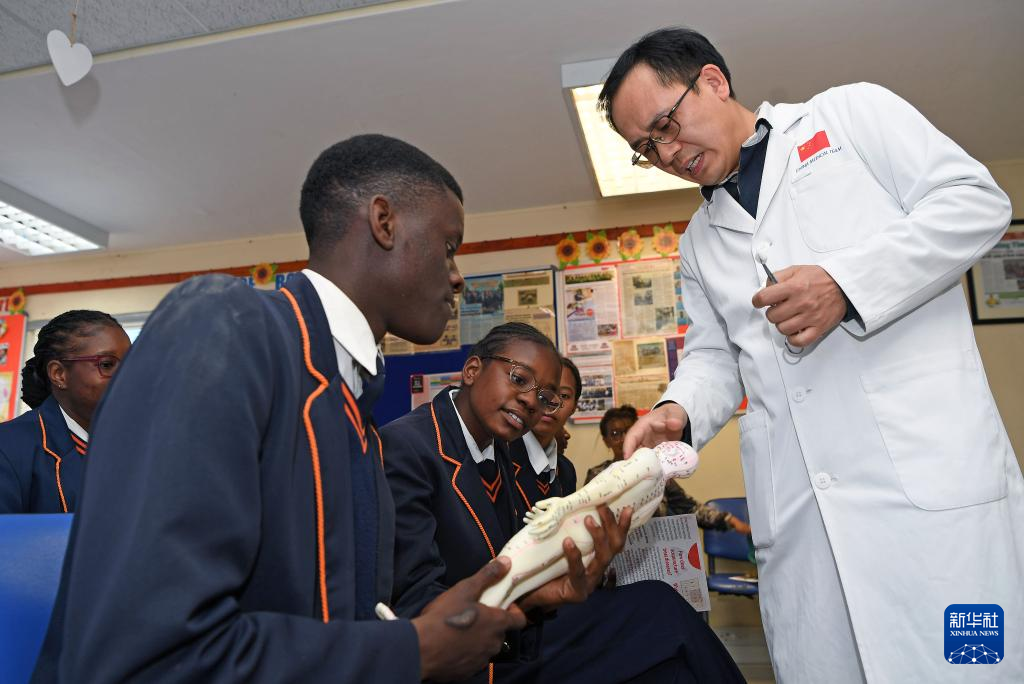 醫(yī)療隊還受邀走進納米比亞大學孔子學院在當?shù)囟鄠€中小學開設(shè)的中文教學點,用針灸、火罐做教具,以傳統(tǒng)中醫(yī)文化為內(nèi)容,讓同學們沉浸式體驗中文學習,受到師生們一致好評。