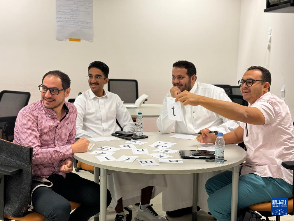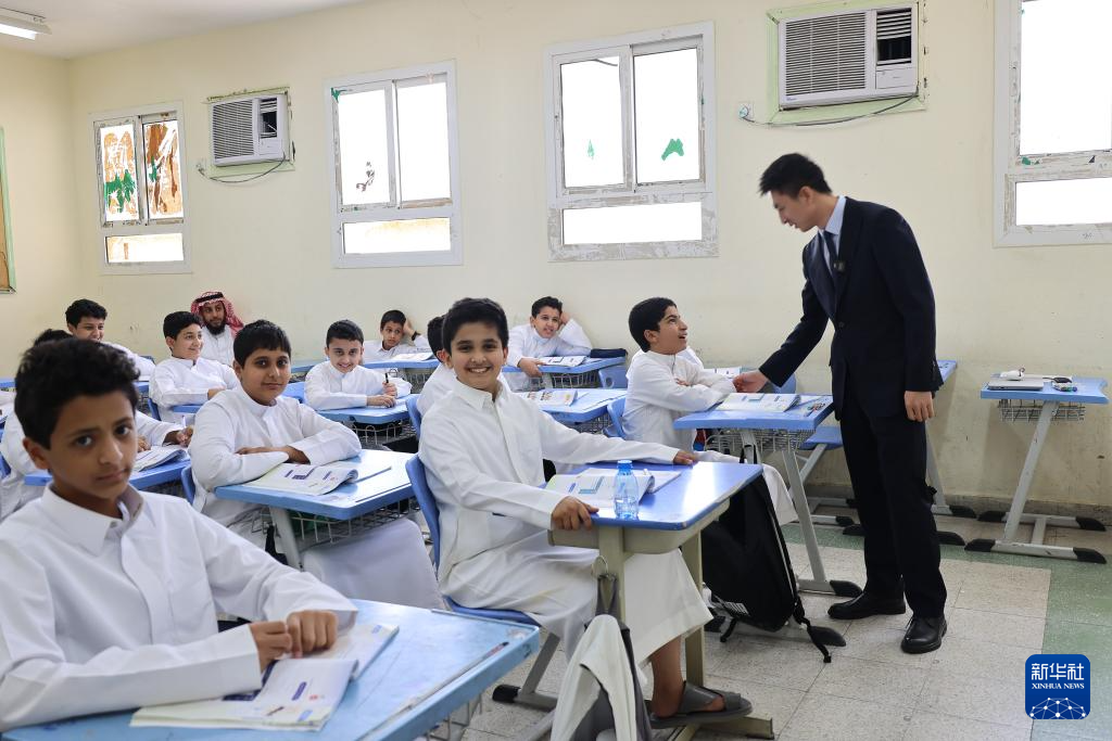 “你好”“老師好”……在沙特阿拉伯首都利雅得北部的一所中學(xué),17名身著阿拉伯白袍的學(xué)生正跟著中文老師史肖一遍遍誦讀著新學(xué)到的內(nèi)容,讀書(shū)聲里洋溢著快樂(lè)。