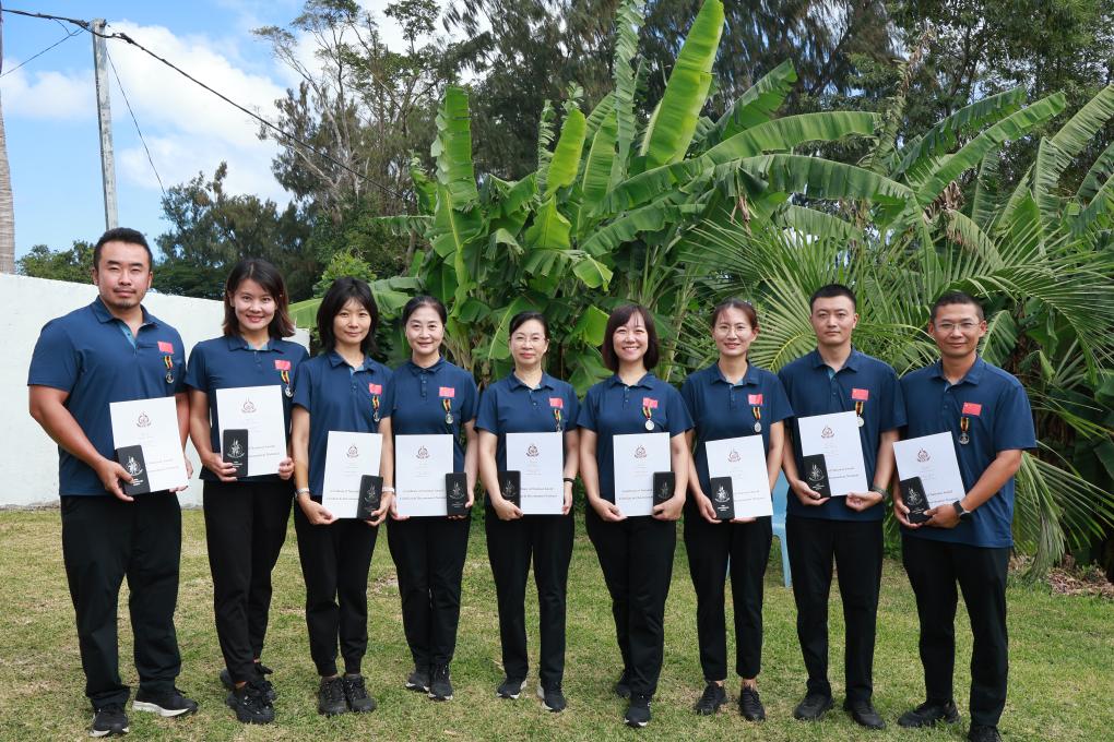 7月30日,在瓦努阿圖首都維拉港,中國援瓦醫(yī)療隊(duì)隊(duì)員手持證書合影。瓦努阿圖總統(tǒng)武羅巴拉武當(dāng)天向中國醫(yī)療隊(duì)9名隊(duì)員頒發(fā)“國家勛章”,以表彰他們?yōu)樘嵘哚t(yī)療衛(wèi)生服務(wù)水平、鞏固瓦中兩國醫(yī)療衛(wèi)生合作作出的卓越貢獻(xiàn)。新華社發(fā)(中國援瓦醫(yī)療隊(duì)供圖)