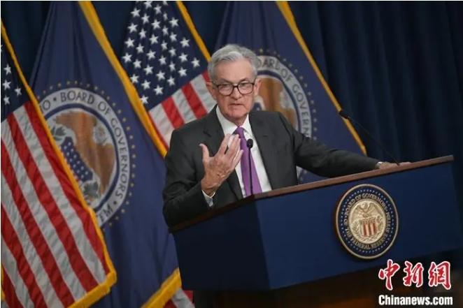 當(dāng)?shù)貢r(shí)間2023年7月26日,時(shí)任美國聯(lián)邦儲(chǔ)備委員會(huì)主席鮑威爾在華盛頓出席記者會(huì)。美國聯(lián)邦儲(chǔ)備委員會(huì)26日結(jié)束為期兩天的貨幣政策會(huì)議,宣布將聯(lián)邦基金利率目標(biāo)區(qū)間上調(diào)25個(gè)基點(diǎn)到5.25%~5.5%。中新社記者 陳孟統(tǒng) 攝