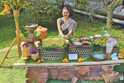 泰國(guó)楠府積極發(fā)展鄉(xiāng)村旅游。圖為當(dāng)?shù)孛癖娫谡故镜胤教厣〕浴?/p>
