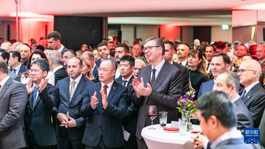 9月18日,在塞爾維亞首都貝爾格萊德,塞爾維亞總統(tǒng)武契奇(前中右)出席中國(guó)駐塞爾維亞大使館國(guó)慶75周年招待會(huì)。新華社發(fā)(王韡攝)