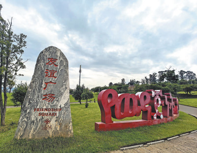 鐫刻著“友誼廣場”幾個中文大字的泰山石碑矗立在半山坡一片平地上。