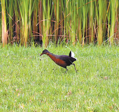 一只正在友誼廣場覓食的魯氏秧雞。