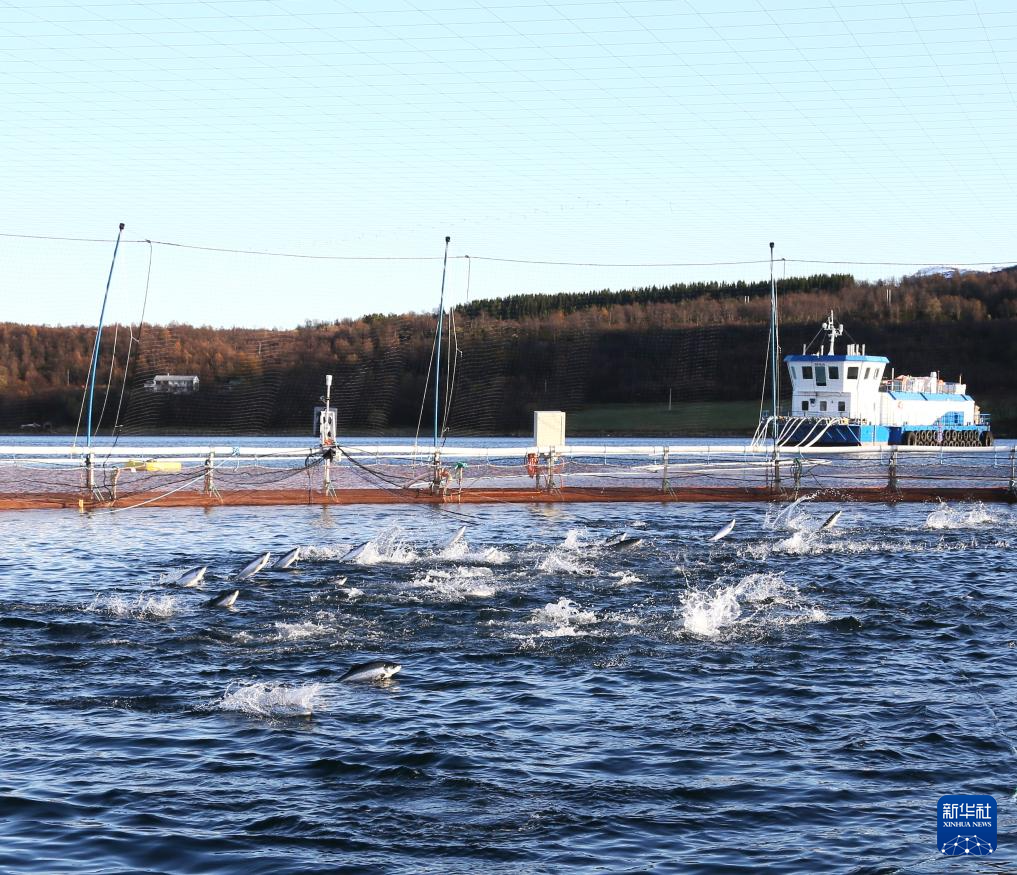 這張2023年10月10日拍攝的資料照片顯示的是位于挪威北部特羅姆斯郡峽灣中的三文魚養(yǎng)殖網箱。新華社記者 張玉亮 攝