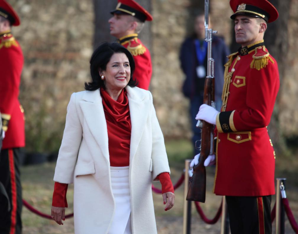 2018年12月16日,格魯吉亞當(dāng)選總統(tǒng)薩洛梅·祖拉比什維利在格東部城市泰拉維宣誓就職,成為格魯吉亞獨(dú)立后首位女總統(tǒng)。新華社發(fā)(格魯吉亞總統(tǒng)府供圖)