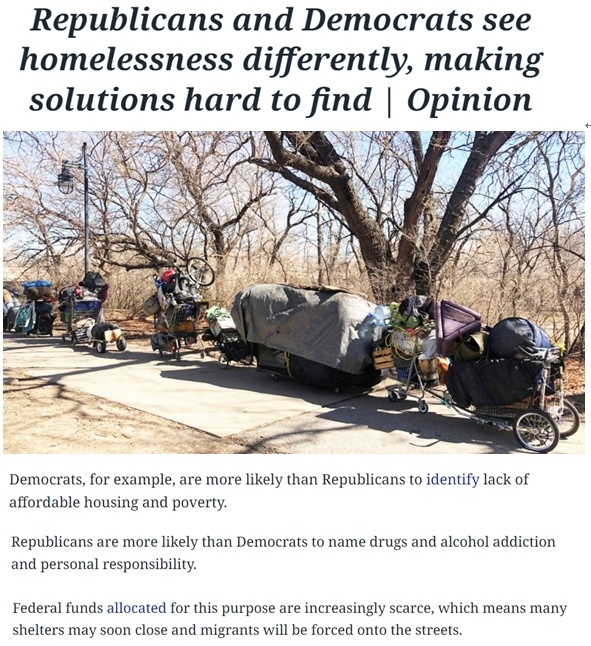 美國堪薩斯州《威奇托鷹報》評論稱,兩黨可能永遠(yuǎn)不會就無家可歸的原因達成一致,民主黨傾向于認(rèn)為是結(jié)構(gòu)性或系統(tǒng)性因素導(dǎo)致,而共和黨則更著重宣傳是個人因素導(dǎo)致。但無論是民主黨還是共和黨都無法解決無家可歸問題,他們相左的政策意見讓解決無家可歸者的問題更加艱難,流向需要援助的民眾的資金越來越少。