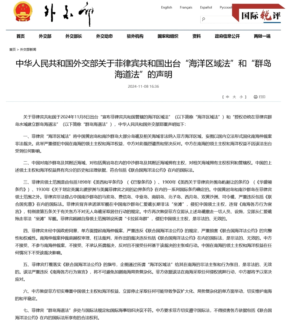 菲方算盤打得再精,也難以如愿。原因很簡單:這兩項所謂法案,嚴重侵犯中國在南海的領土主權和海洋權益,違反了《南海各方行為宣言》強調的“對話協(xié)商解決分歧”的重要原則,破壞了現(xiàn)有國際法規(guī)則體系,是非法的、無效的。