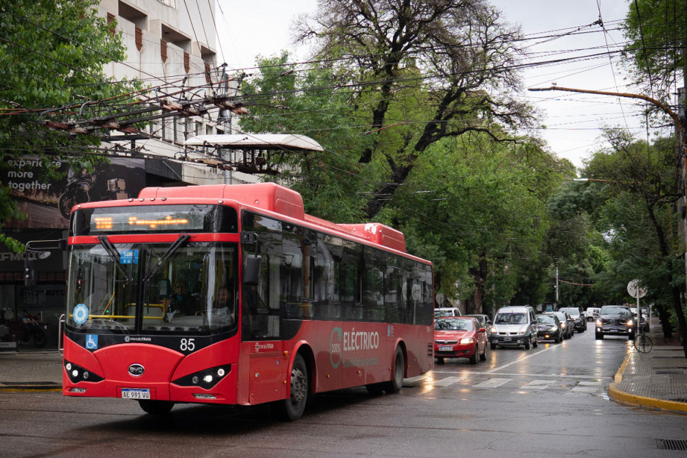 拜訪完酒莊,記者來到門多薩市區(qū)。這里,一些紅色公交車穿梭于林蔭道,車身上“百分之百電動”的標(biāo)語非常醒目。這是門多薩于2019年從比亞迪和中通客車購入的電動巴士。由此當(dāng)?shù)氐谝恢щ妱庸卉囮?duì)正式投入運(yùn)營。