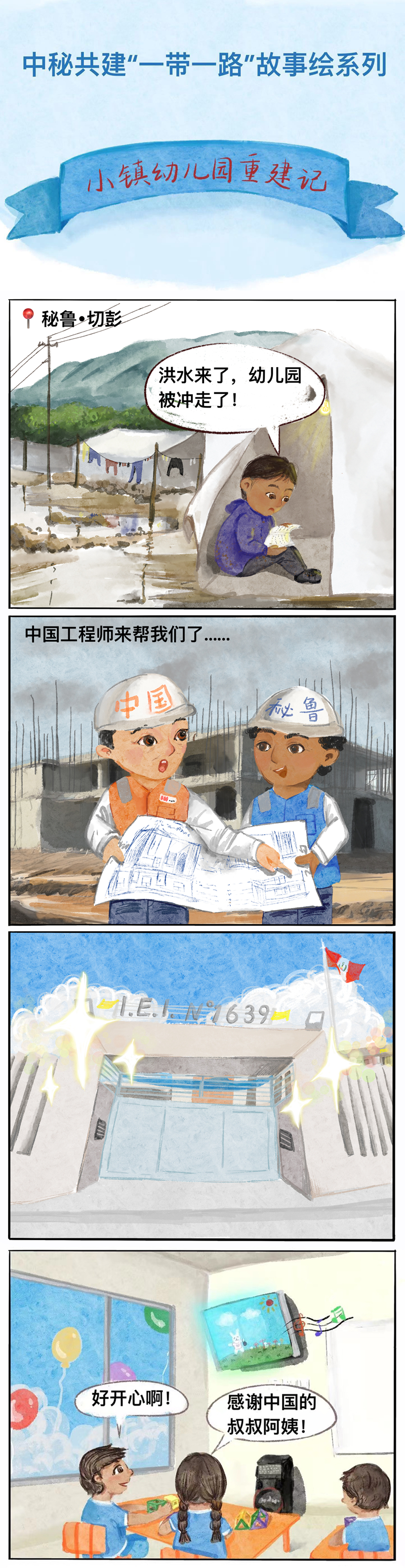 開學(xué)之際,懷著重返校園的喜悅和對(duì)美好未來的憧憬,孩子們在新教學(xué)樓前放飛了氣球。學(xué)生亞米萊·埃斯皮諾薩說:“感謝中國的叔叔阿姨為我們所做的一切,我將永遠(yuǎn)銘記?!保ㄓ浾撸航⑼蹒娨?;手繪:江雪)