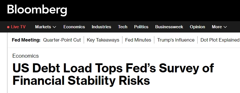彭博社(Bloomberg)在報(bào)道中提到,美國(guó)政府的債務(wù)負(fù)擔(dān)現(xiàn)在被認(rèn)為是金融穩(wěn)定面臨的最大風(fēng)險(xiǎn),在美聯(lián)儲(chǔ)的一項(xiàng)調(diào)查中,其重要性超過了持續(xù)的通貨膨脹。逾半數(shù)受訪者(54%)認(rèn)為美國(guó)財(cái)政債務(wù)的可持續(xù)性是一個(gè)突出風(fēng)險(xiǎn),而半年前這一比例僅為40%。美聯(lián)儲(chǔ)的半年度金融穩(wěn)定報(bào)告寫道:“美國(guó)財(cái)政債務(wù)可持續(xù)性方面的擔(dān)憂位居榜首,其次是中東緊張局勢(shì)升級(jí)和政策的不確定性?!?/p>