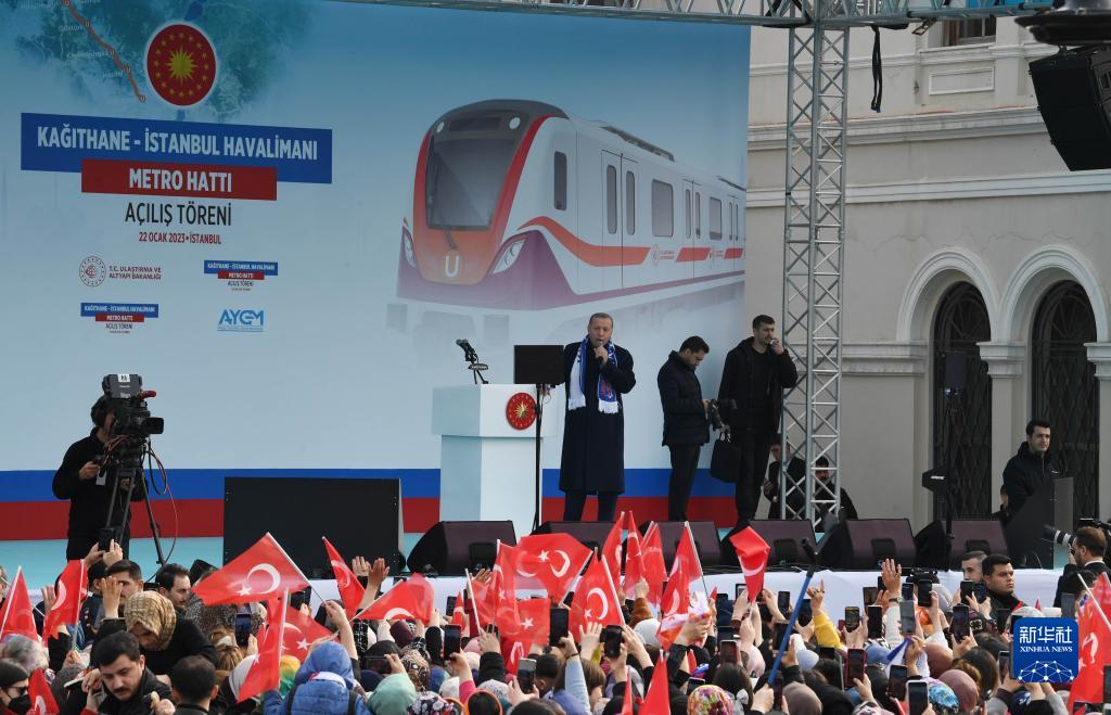 2023年1月22日,土耳其總統(tǒng)埃爾多安出席伊斯坦布爾新機(jī)場線開通儀式。(圖源:新華社)