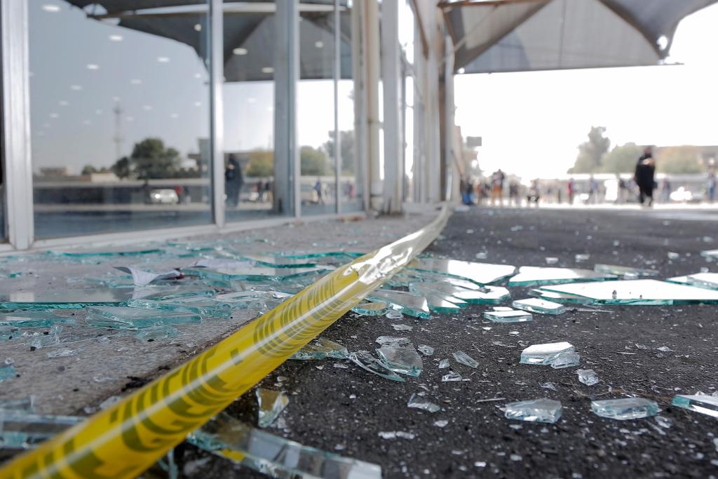 這是12月27日在也門薩那國(guó)際機(jī)場(chǎng)拍攝的地面上破碎的玻璃。新華社發(fā)(穆罕默德·穆罕默德攝)