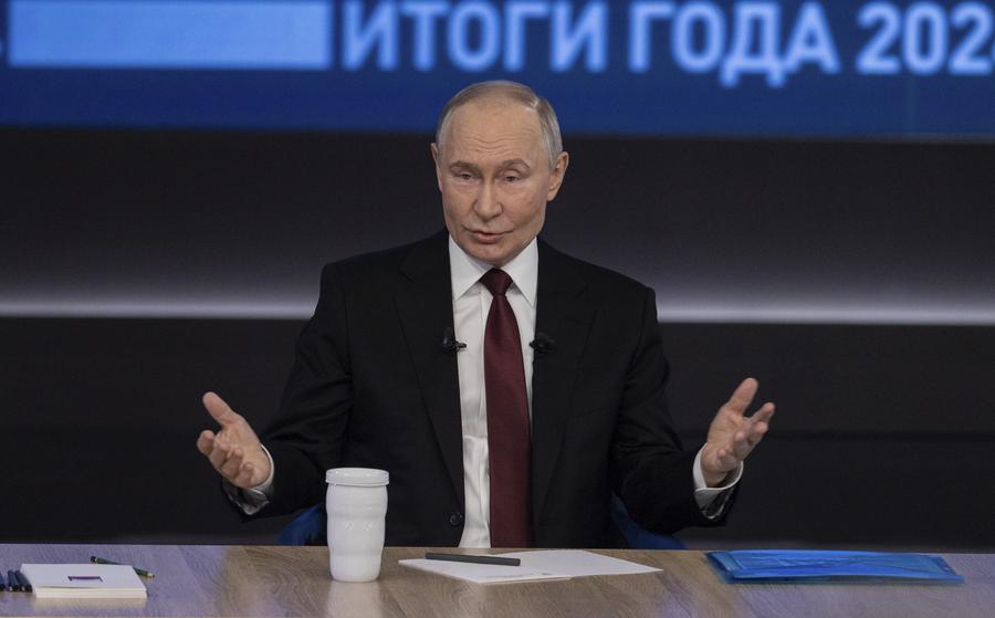2024年12月19日,在俄羅斯首都莫斯科,俄羅斯總統(tǒng)普京在“年度盤點(diǎn)”活動(dòng)上講話。新華社記者白雪騏攝