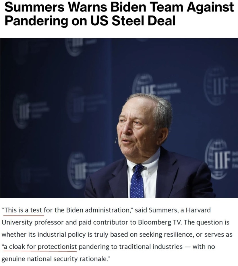 早在去年收購案推進(jìn)過程中,美國前財政部長勞倫斯·薩默斯就曾表態(tài)認(rèn)為,日鐵收購美鋼并不會構(gòu)成“國家安全風(fēng)險”。