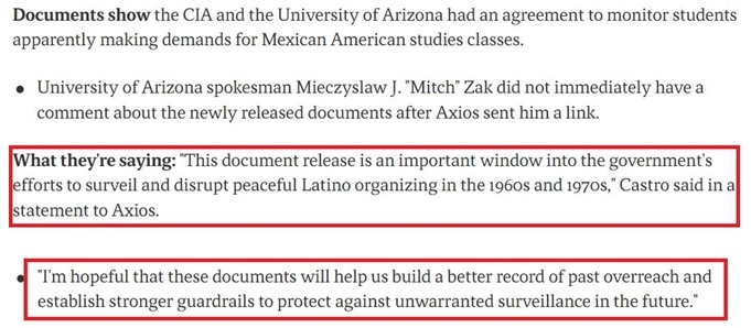 此外,中情局還試圖密切監(jiān)控亞利桑那州、加利福尼亞州和科羅拉多州的墨西哥裔美國學生活動人士,甚至讓臥底特工滲透到學生團體中。