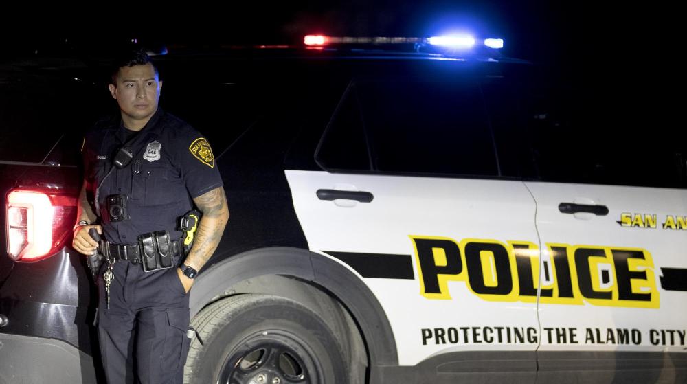2022年6月27日,警察在美國得克薩斯州圣安東尼奧移民死亡事件現(xiàn)場警戒。新華社發(fā)(尼克·瓦格納攝)
