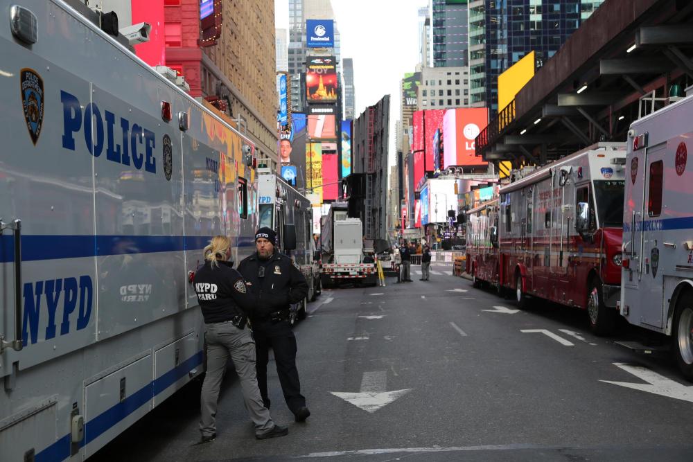 2024年12月31日,警察在美國紐約時報廣場執(zhí)勤。新華社記者劉亞南攝