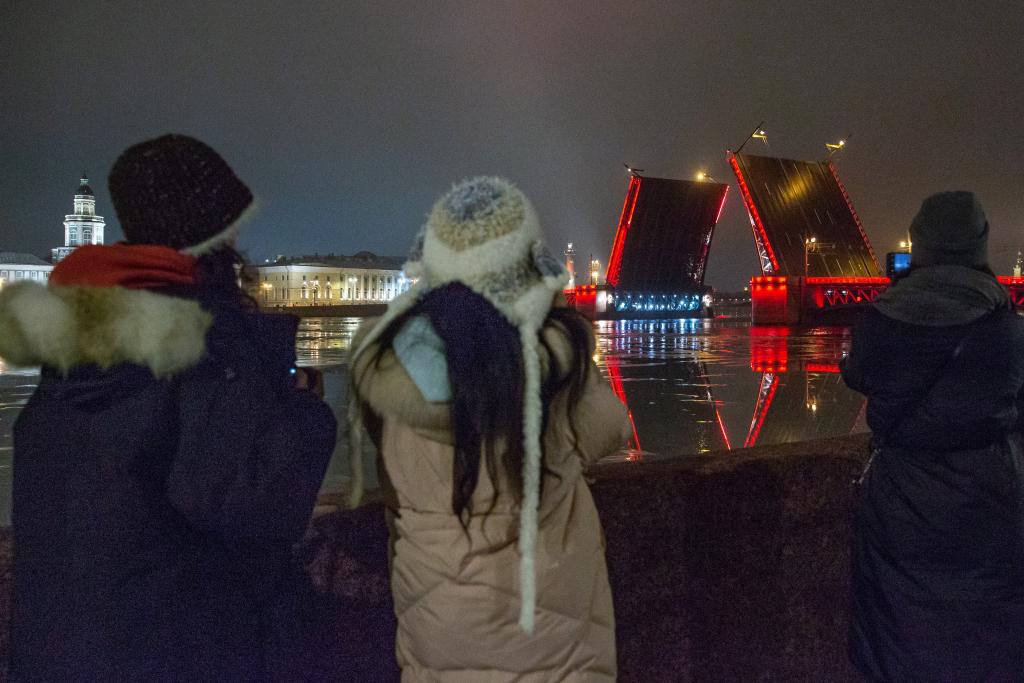 按照當(dāng)?shù)貍鹘y(tǒng),涅瓦河上的多座橋梁只在每年4月至11月通航季定時(shí)開合,以便大型船只通航?!斑@是圣彼得堡首次為外國節(jié)日開橋,特別獻(xiàn)給我們的中國朋友。”圣彼得堡市對(duì)外關(guān)系委員會(huì)主席格里戈里耶夫說。