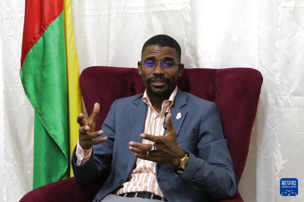 1月28日,幾內(nèi)亞比紹國(guó)家電視臺(tái)臺(tái)長(zhǎng)阿馬杜·賈曼卡在首都比紹接受新華社專訪。新華社記者 司源 攝