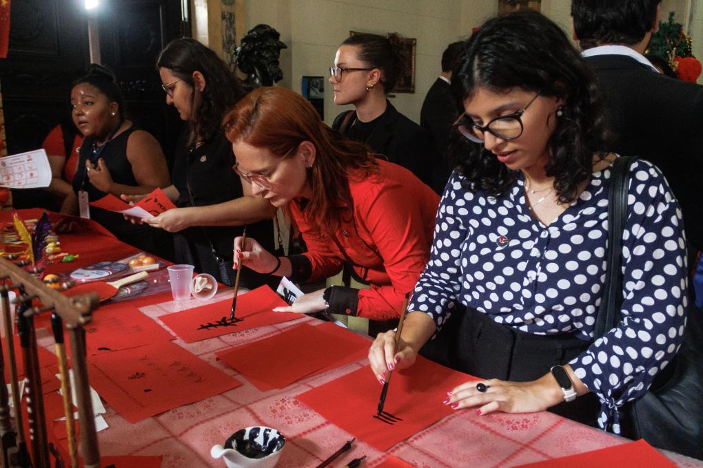 嘉賓們隨后來到蒂拉登特斯宮入口大廳處,體驗(yàn)書法、針灸等,并在寫有“巳巳如意 生生不息”的簽名板上簽名留念。