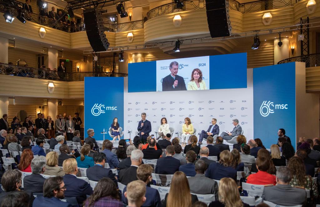 2024年2月18日,慕安會(huì)主席克里斯托夫·霍伊斯根(中左二)在德國(guó)慕尼黑舉行的第60屆慕尼黑安全會(huì)議上發(fā)表閉幕致辭。新華社記者 張帆 攝