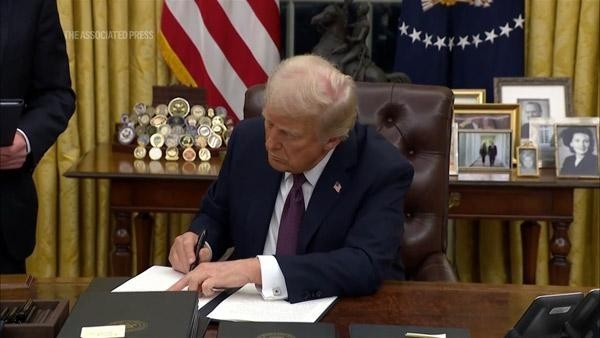 當(dāng)?shù)貢r間1月20日,特朗普簽署行政命令,要求暫停美國所有對外援助計劃。 美聯(lián)社視頻截圖