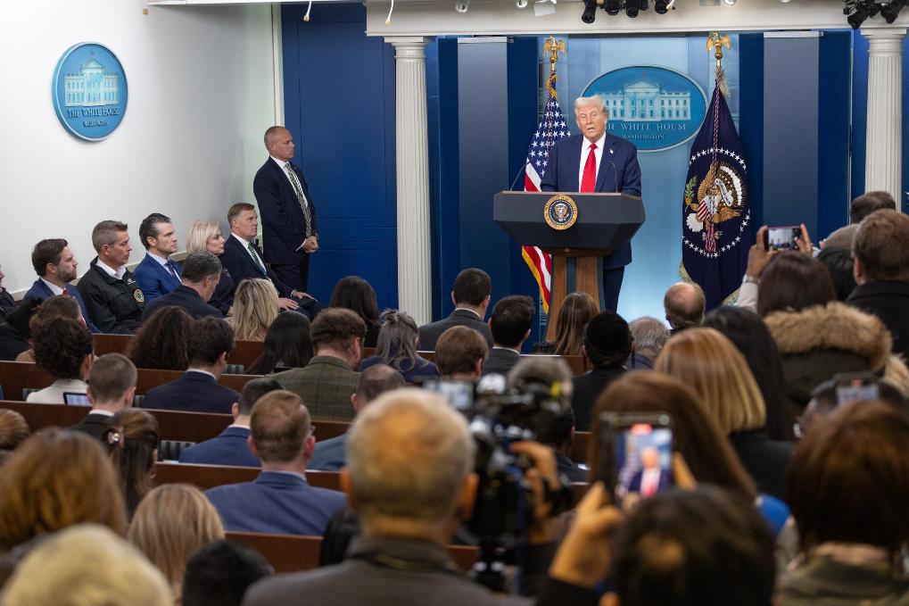 1月30日,美國(guó)總統(tǒng)特朗普在首都華盛頓的白宮出席新聞發(fā)布會(huì)。新華社記者胡友松攝